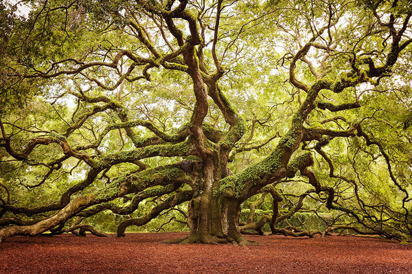 Живые дубы, обитающие у побережья, могут уступить место морю при смещении и отливе барьерных островов. Даже после смерти их форма приобретает навязчивую скульптурную красоту. Дерево наверху стоит в заливе Ботани на острове Эдисто.