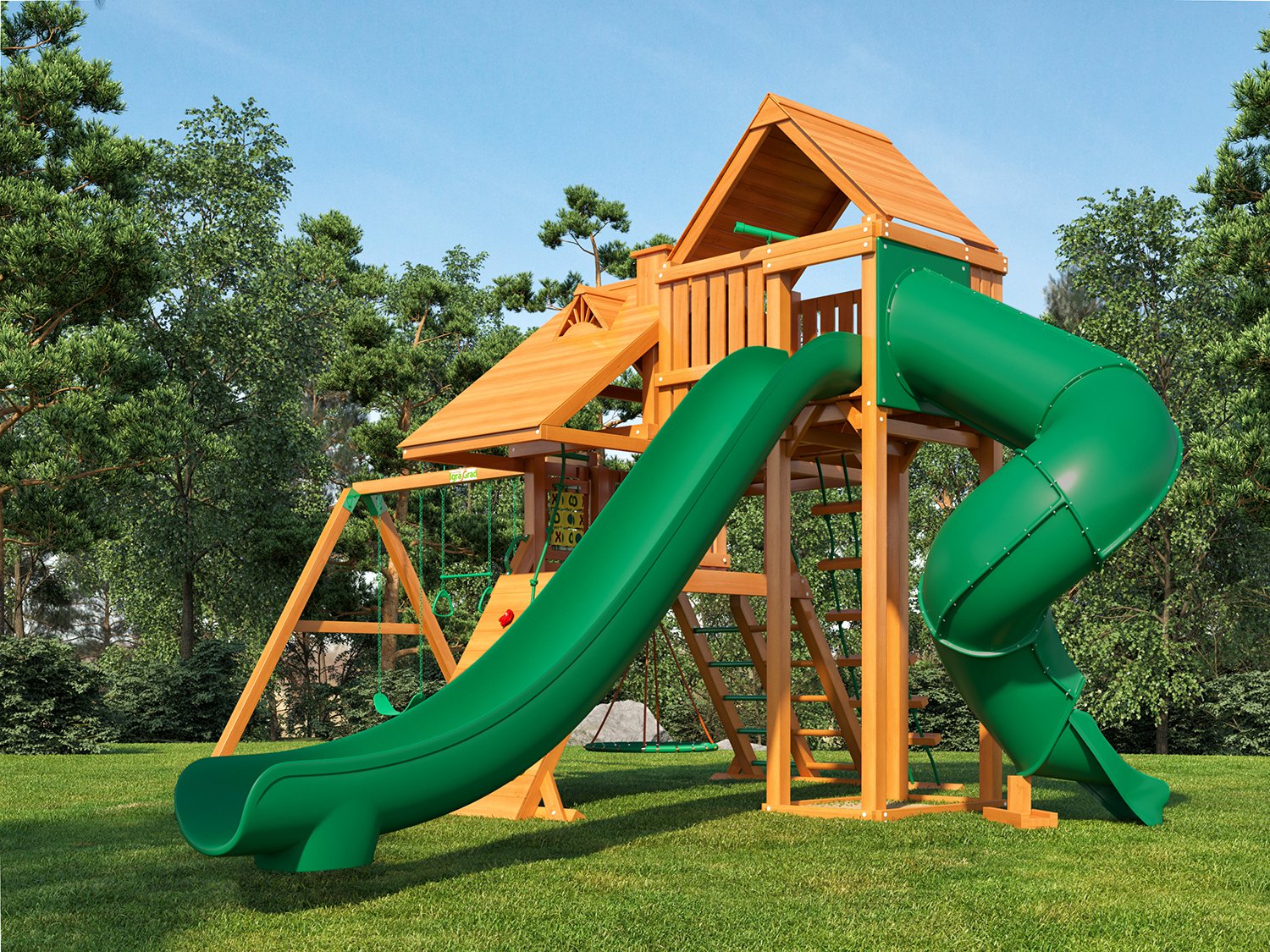Он станет отличной игровой площадкой для детей, на которой они с удовольствием будут проводить большую часть времени. А благодаря большому количеству вариаций внешнего вида сможет вписаться в экстерьер любого дачного участка.