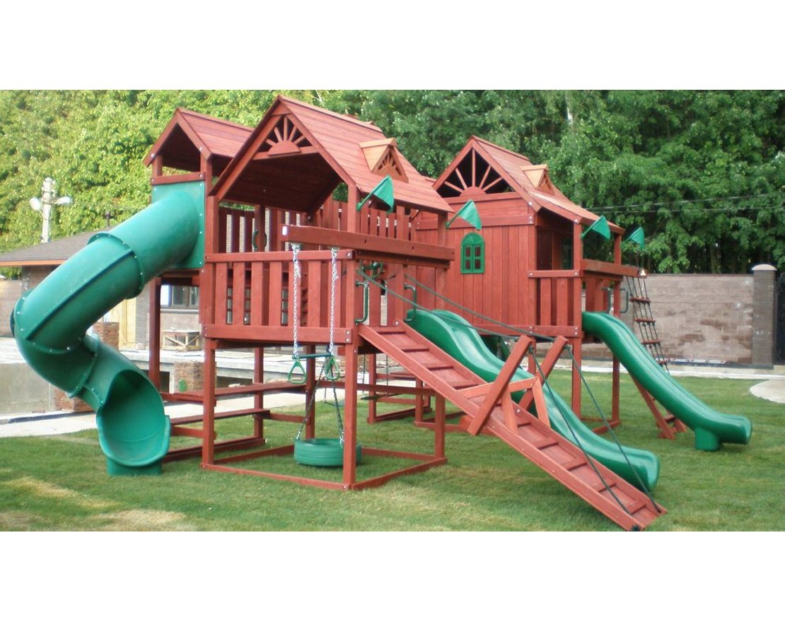 Подобный городок подходит для большого открытого пространства, доступного на даче.