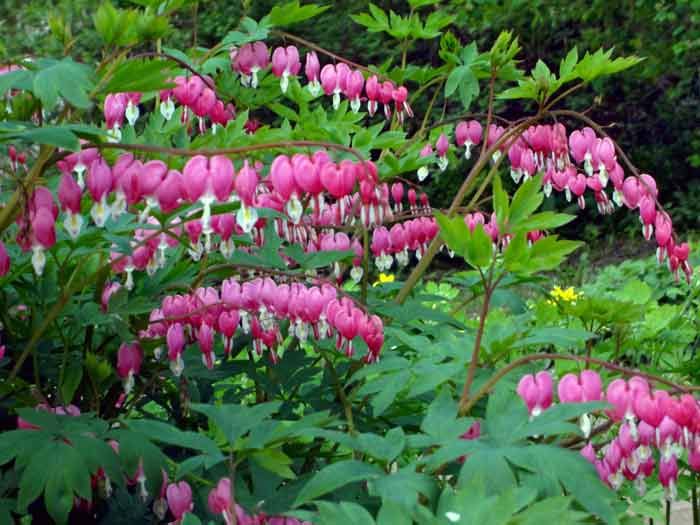 Обыкновенные кровоточащие сердца цветут в середине-конце весны, см. подробности о других разновидностях.