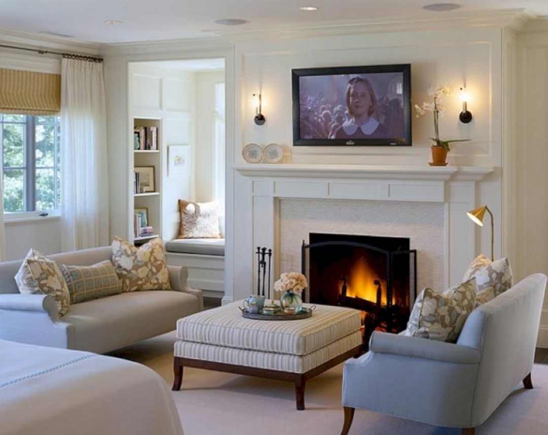 В некоторых случаях в вашей гостиной могут быть другие элементы, требующие внимания, помимо камина. Телевизор с большим экраном может конкурировать с вашим камином, а окно с прекрасным видом может отвлечь внимание комнаты. Вместо того, чтобы выбирать какую-то одну особенность, которая будет центром внимания комнаты, позвольте камину делиться центром внимания. С телевизором вы можете разделить фокус, установив его на стене над камином и расположив зону отдыха вокруг двух.В большой комнате, где у вас есть окно с прекрасным видом на камин, создайте две зоны отдыха — одну напротив камина, а другую напротив окна, чтобы гости могли пользоваться одной или обеими функциями в зависимости от сезона. В меньшем пространстве расставьте мебель на параллельных линиях между камином и окном, чтобы вы могли использовать обе функции, сидя на диване.
