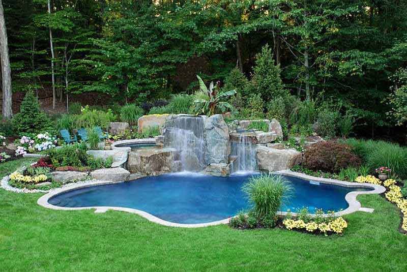 - Прудик для плаванья – бассейны еще можно отнести к видам водоемов искусственного типа. Кроме эстетической функции они дают возможность освежиться или плавать в зависимости от габаритов.