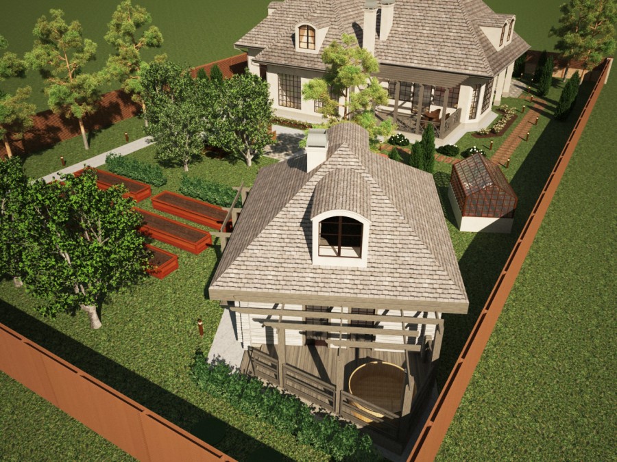 Далее потребуется «привязать» вспомогательные постройки и продумать коммуникационные связи – дорожки и тропинки.