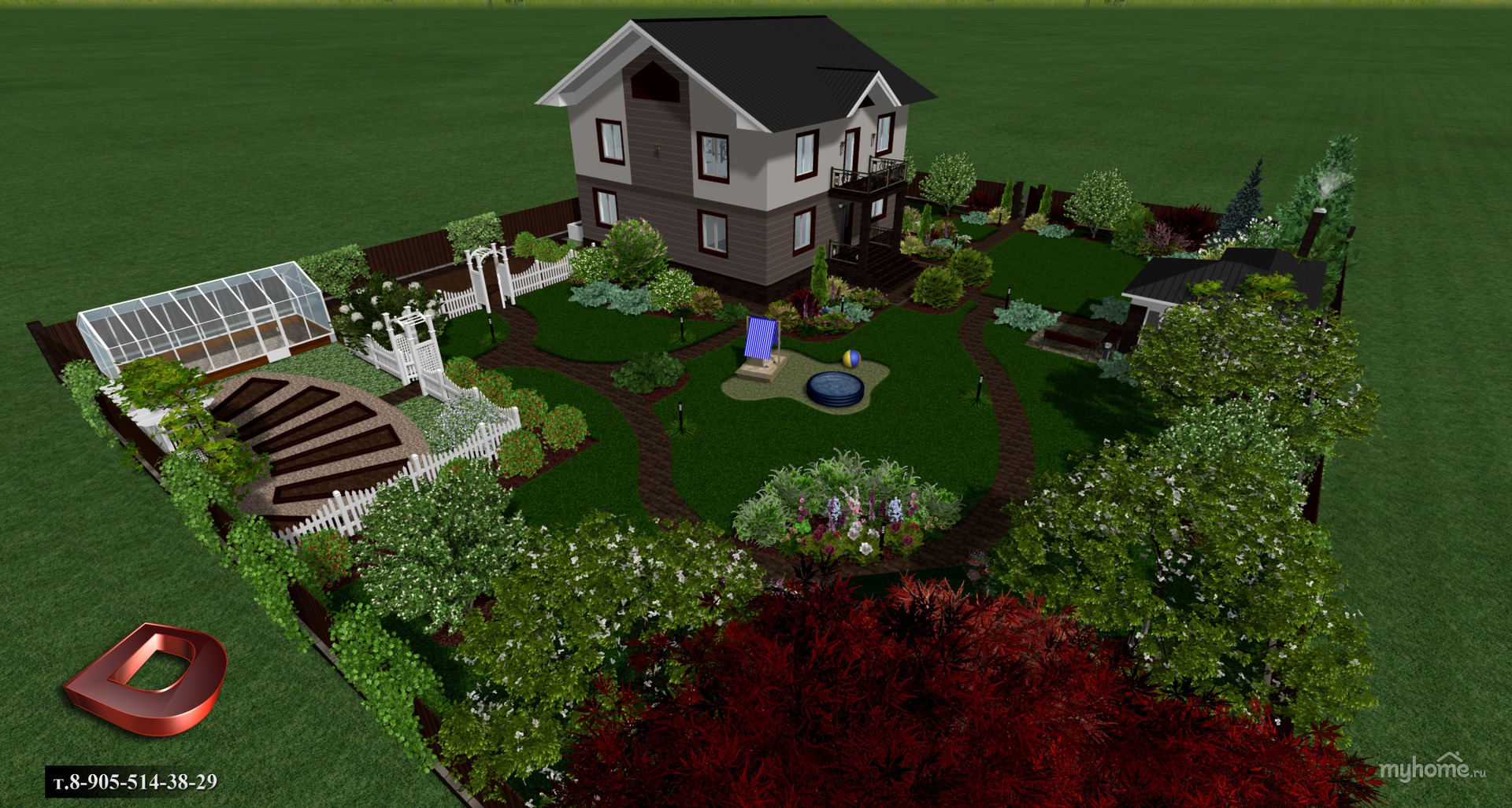 - Перед домом разбить клумбы, газон.