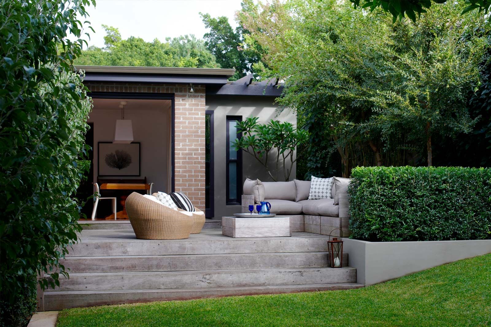 …Второй прием – убрать границу между двором и интерьером, сделав террасу, переходящую в сад.