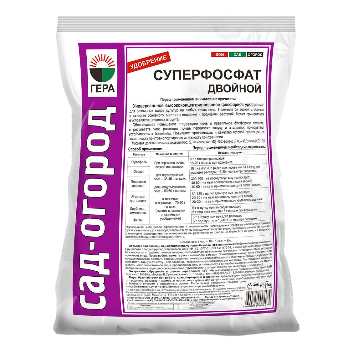 Учитывая, что двойная форма суперфосфата является самой распространённой, для неё отдельно представлена инструкция по применению: