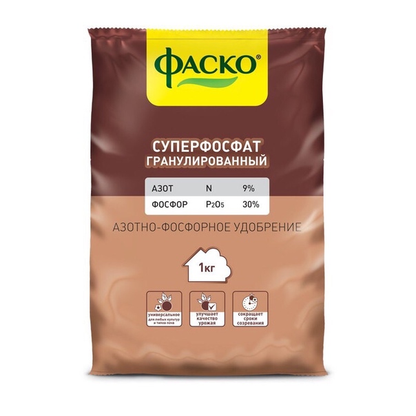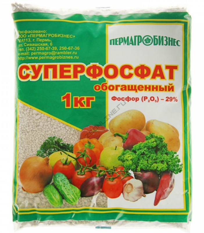 Суперфосфат — минеральное удобрение, которое получают из природных фосфатов, отсюда невысокая цена. Главным достоинством этого продукта является содержание оксида фосфора (P2O5) в водорастворимом виде, благодаря чему фосфор быстро поступает в растение.