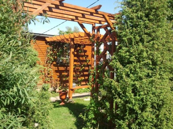 Вариант полуарочного типа чаще реализуют на дачных участках, где места для выращивания винограда не слишком много. В этих случаях посадки культуры совмещаются с зоной отдыха, где навес обеспечивает защиту от палящих лучей солнца. Полуарка предполагает посадку кустов только в один ряд. Такие опоры дают садоводу возможность выращивать несколько сортов культуры с различными сроками созревания.
