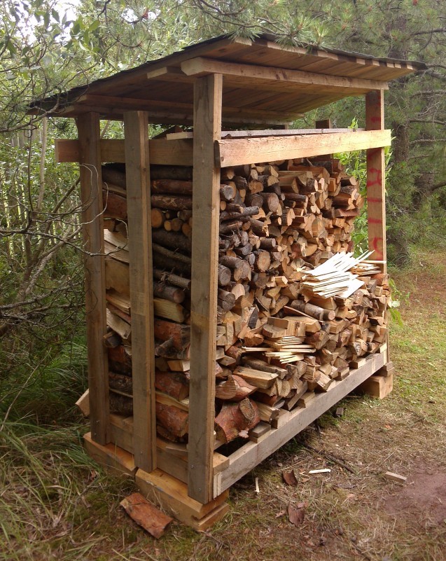 Для максимально удобного подхода к дровам и простой укладки материала хорошо подойдет конструкция в виде грибка, размещенная ниже.