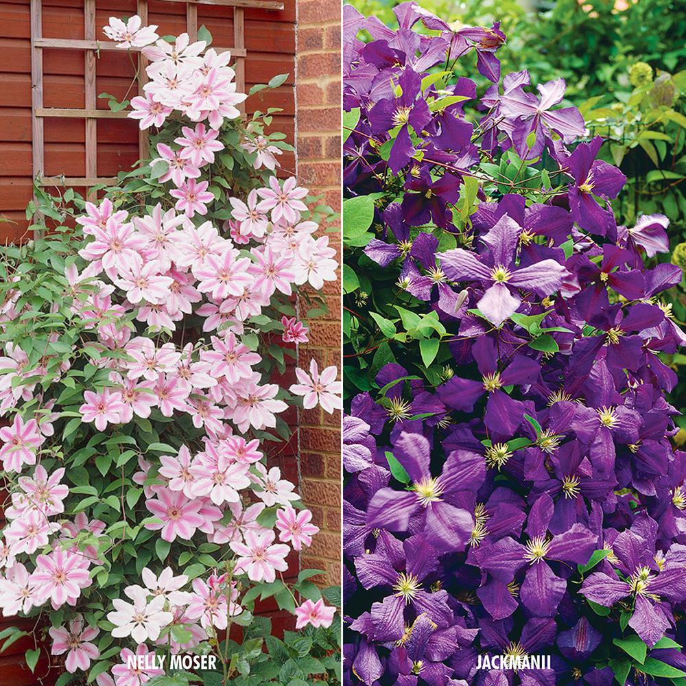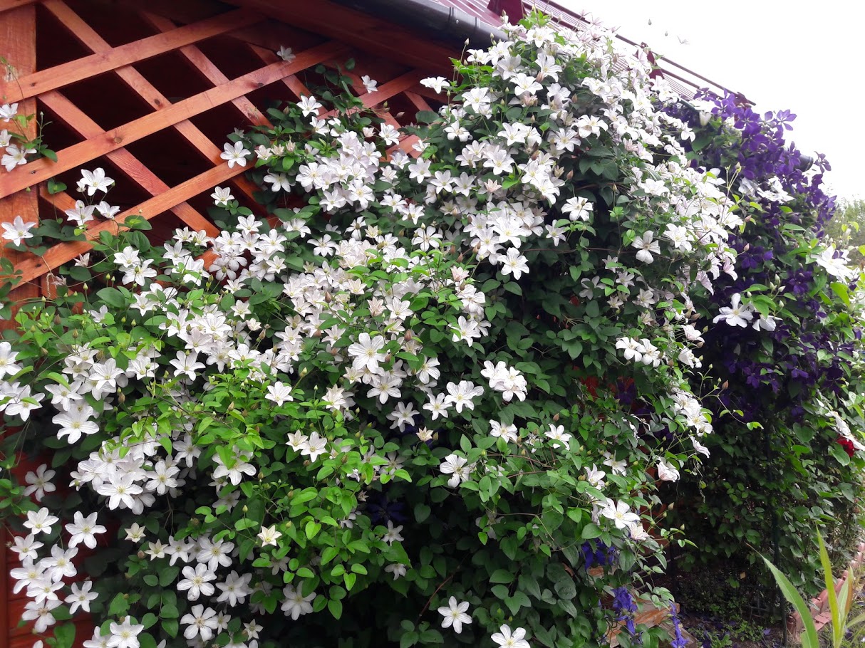 Два вида клематисов, растущих вместе на шпалере Наблюдая за клематисами в течение года (да, всего года), вы получите важную информацию.