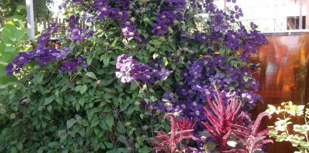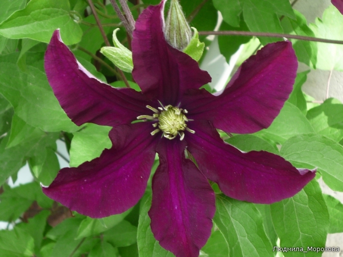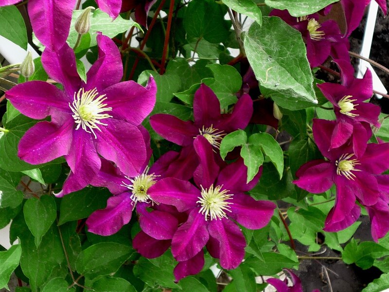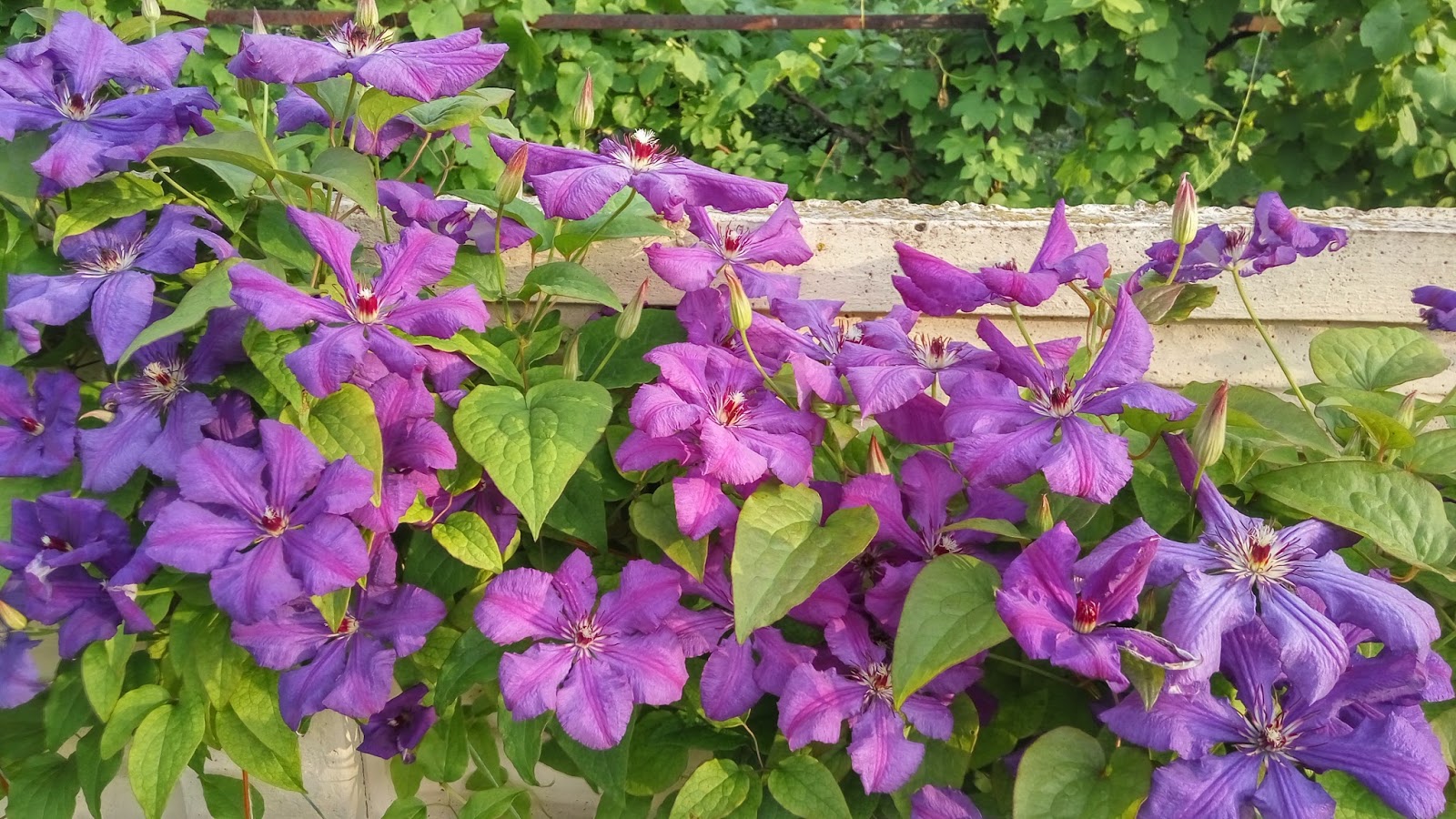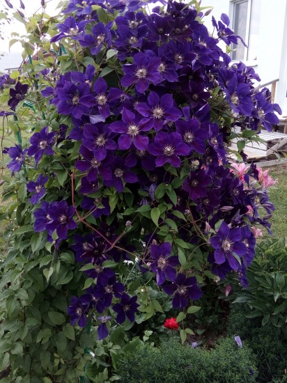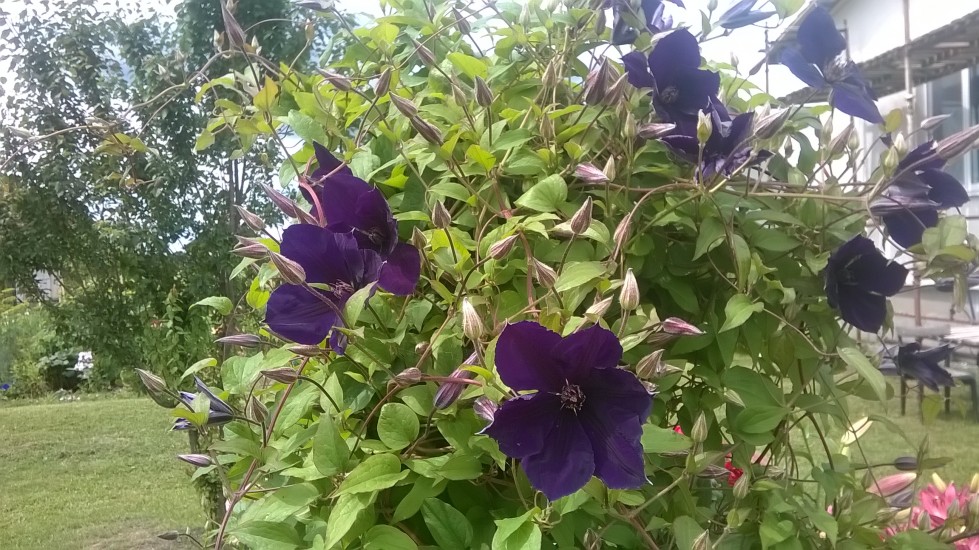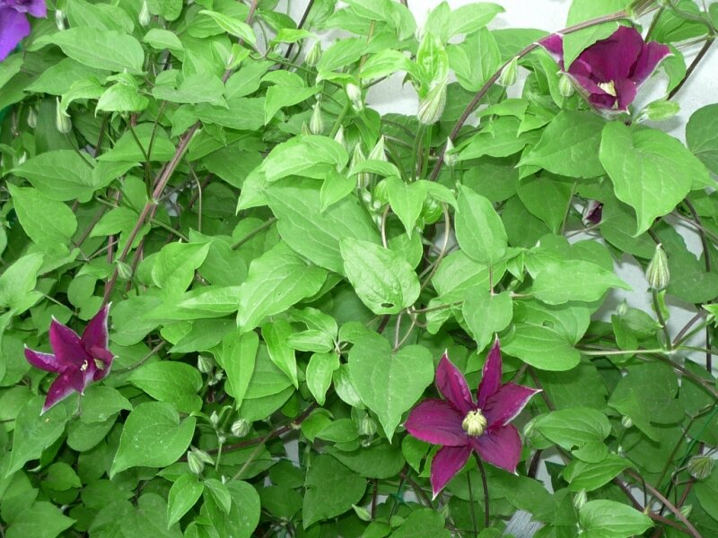 Клематис Gipsy Queen относится к умеренно растущим сортам.