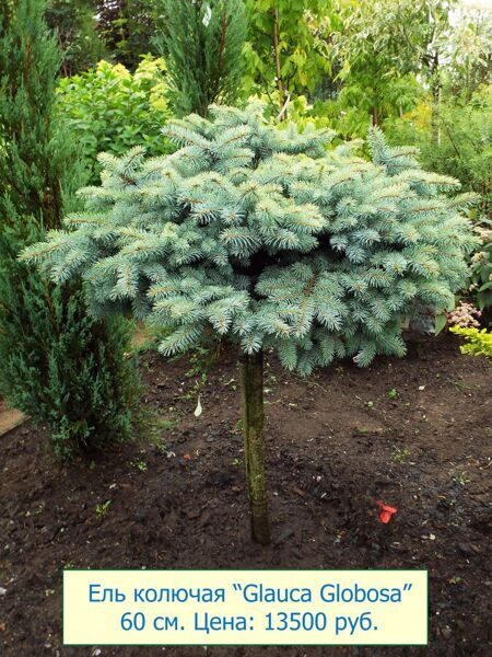 Ель колючая Глаука Глобоза \Picea pungens `Glauca Globosa` ( саженцы 1.5л 2 года ) ШТАМБ 50-60см