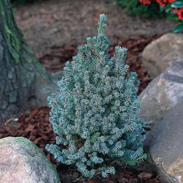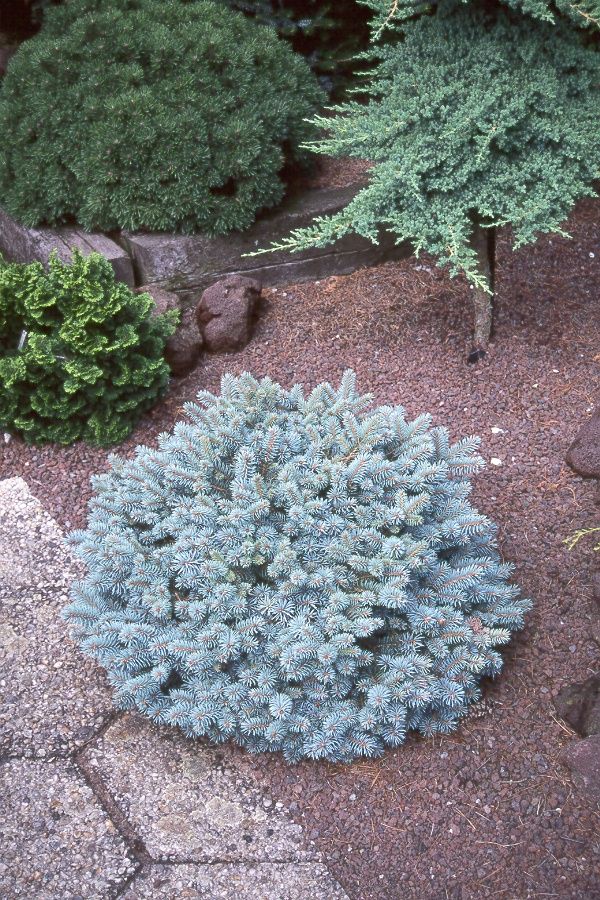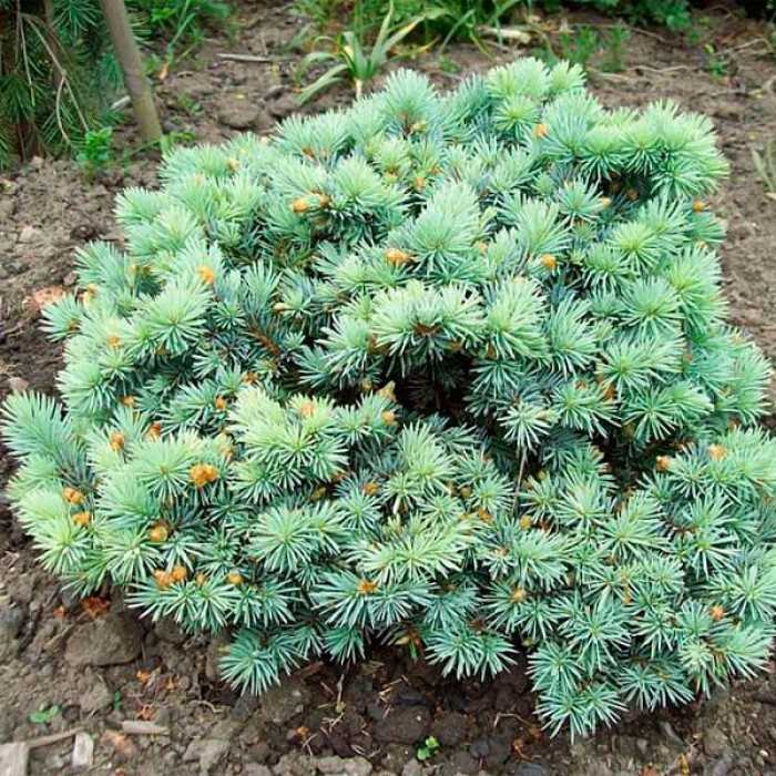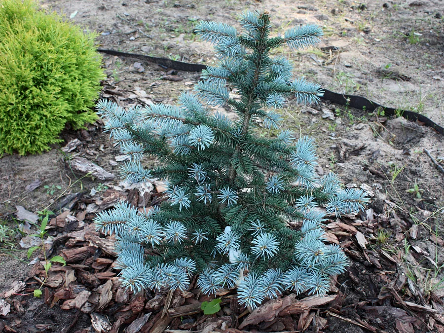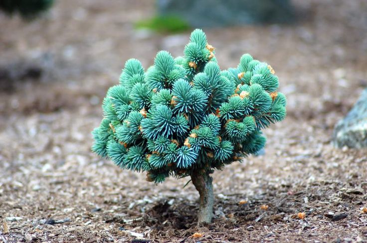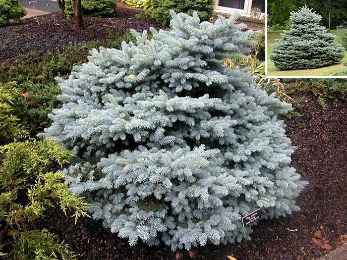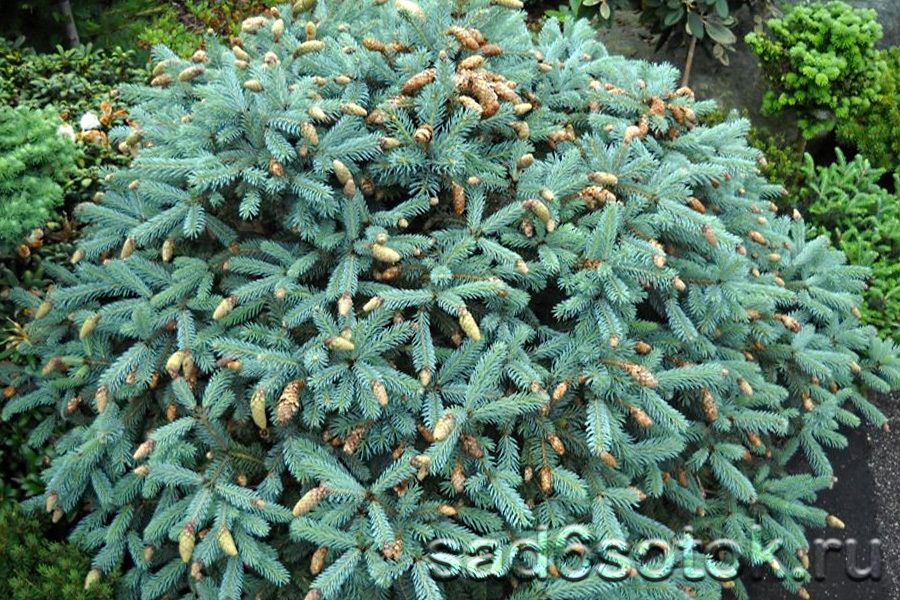 Молодые ели с декоративной окраской хвои имеют полушаровидную форму, центральный проводник проявляется только к 5-7-летнему возрасту.