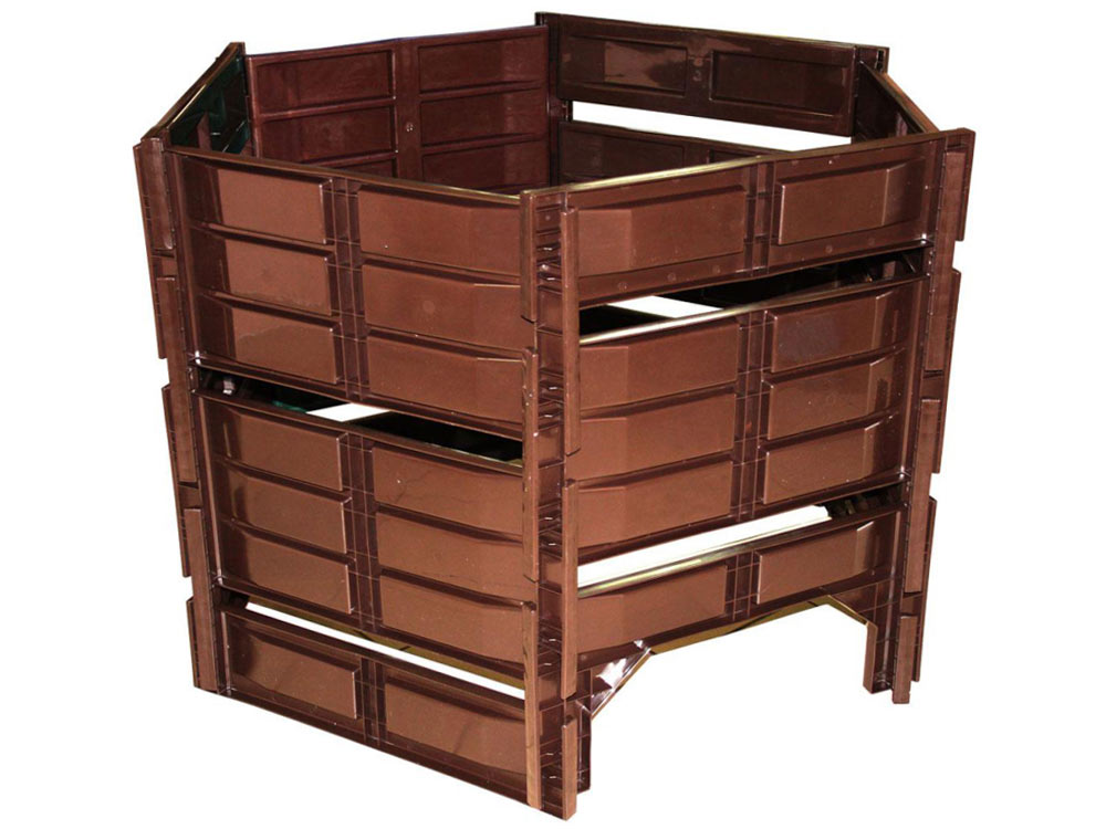 Садовые компостеры производятся из пластика и могут иметь вид ящика (на 600, 800 и 1200 л) или бака с крышкой аналогичного объема. Так как пластик не пропускает воздух, все емкости для компоста дополнительно снабжены отверстиями для аэрации и быстрого созревания органики. Период созревания органики – 1 год. Сверху емкости закладывается органический мусор, а снизу готовое сырье изымается, не требуется дополнительная аэрация и перекопка компоста. Компостные баки и ящики 600, 800 и 1200 л обладают разборной конструкцией – идеальный вариант для переноса компостера на участке. Благодаря эффективной аэрации смеси обеспечиваются лучшие условия для созревания компоста. Оригинальная конструкция ящика позволяет доставать нижний слой перегноя, не разбирая весь компостер. Достаточно лишь снять нижнюю планку для того, чтобы получить доступ к компосту.