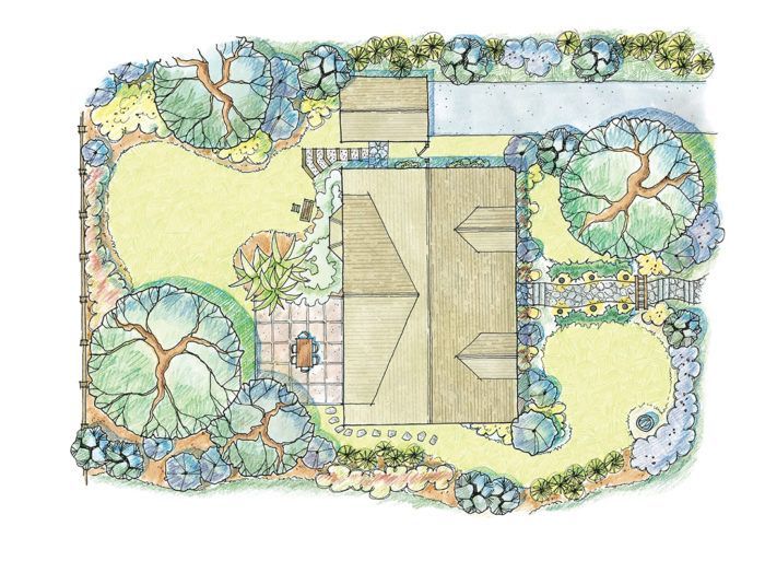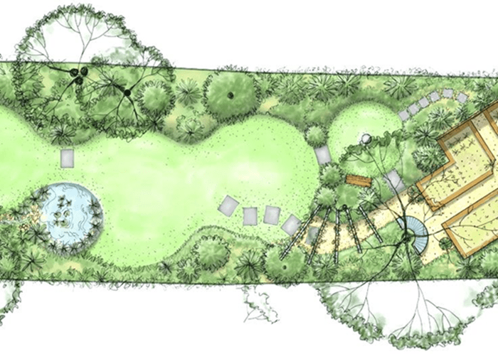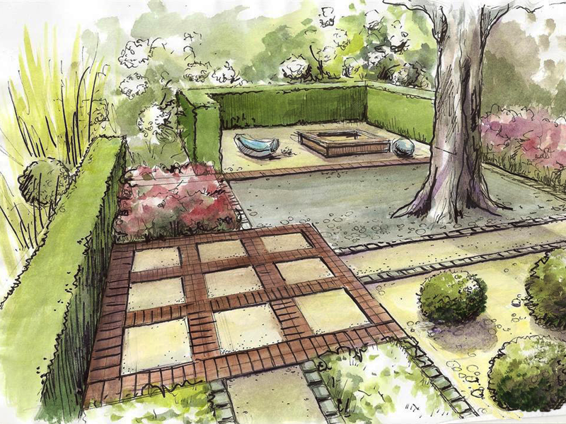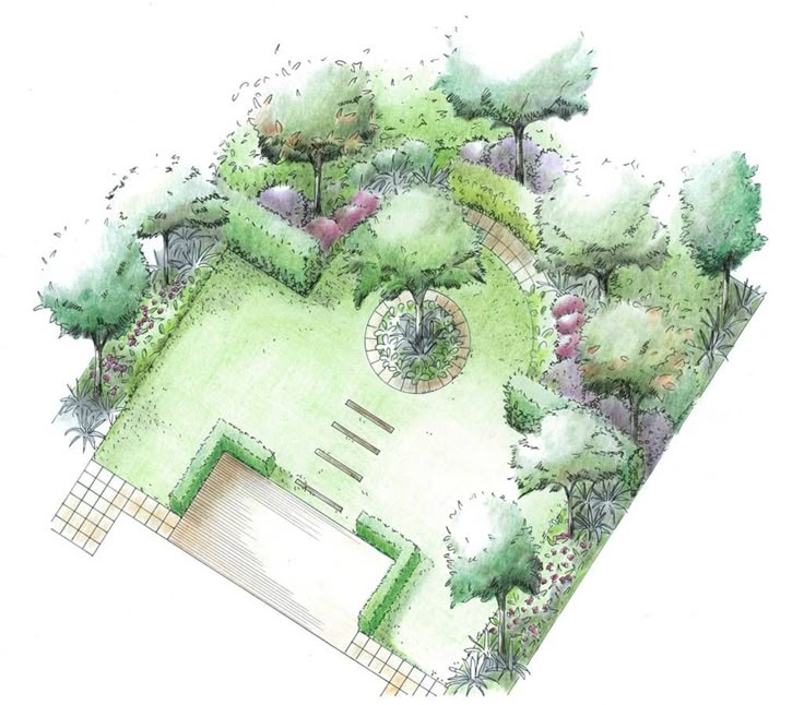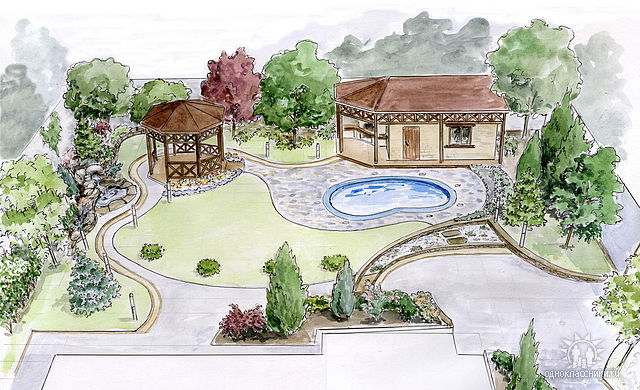 Как выглядит ландшафтный дизайн участка на эскизе?