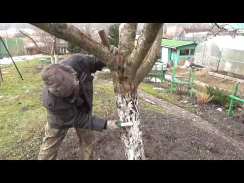 Верх покрасить чем-нибудь белым, чтобы поверхность не перегревалась. А весной необходимо снять повязку и заново обработать раствором глины. Зимой рану укутывают светлыми тряпочками, а поверх накрывают полиэтиленом.