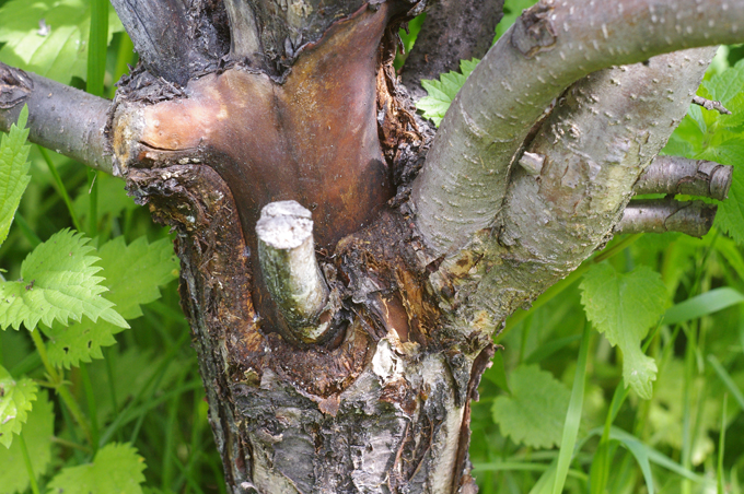 Чтобы не потерять из-за этого всё дерево, необходимо каждую весну тщательно исследовать штамб и сучья. И как только что-то найдено, сразу же принимать действия — пока трещины и пузыри отслаивающейся коры еще маленькие.