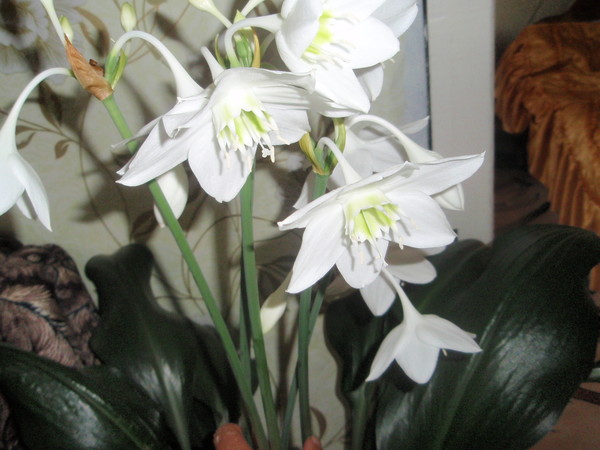 На фото: Выращивание эухариса в домашних условияхЭухарис после цветения