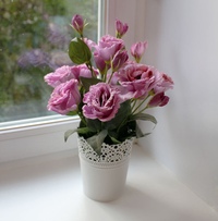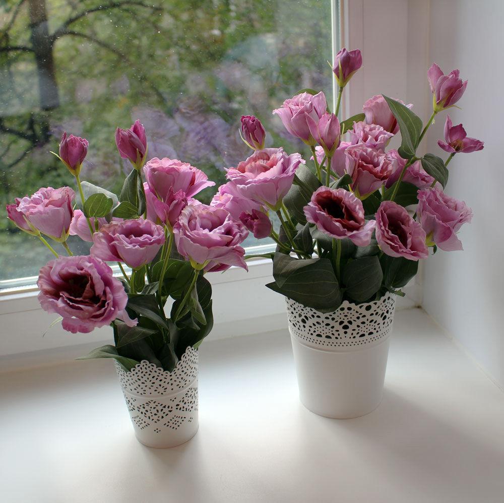 Выращивать эустому в горшках непросто, так как она остро нуждается в свежем воздухе и ярком рассеянном свете. Лучший выход из ситуации – западное или восточное окно в помещении с возможностью поддержания оптимальной для растения температуры 19-22 ºC при регулярном проветривании. Кроме того, уход за эустомой предполагает умеренный полив отстоянной мягкой водой по мере подсыхания верхнего слоя почвы.