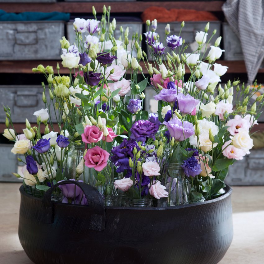 Для многих флористов цветок эустома – излюбленное растение. Благодаря большому количеству расцветок, пышным, шелковистым цветам на длинных цветоносах, она по праву занимает центральное место в цветочных композициях, праздничных и свадебных букетах. Эустома поражает не только красотой и обилием цветовой гаммы, но и удивительной стойкостью. Букеты из нее могут стоять в воде около двух недель.