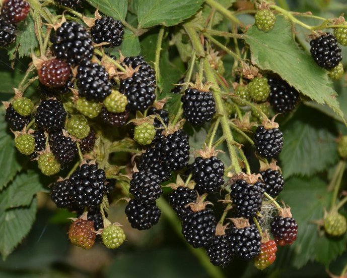 На фото созревание ежевики Флинт — достаточно дружное