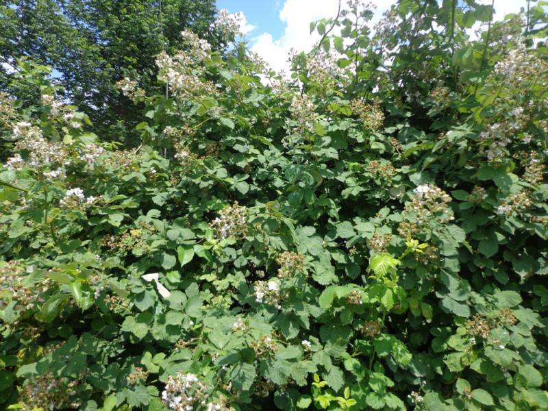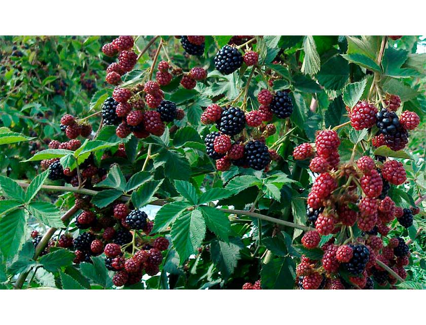Рис. 1. Кусты ежевики без колючек, загруженные плодами. Фото Гэри Гао, Южные центры ОГУ. |