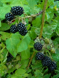 Цветущая ежевика – медонос. Белые цветки ежевики диаметром около трех сантиметров раскрываются в зависимости от сорта и климатических условий с июня по август. Сочные плоды ежевики, черные с сизым налетом, созревают в августе.