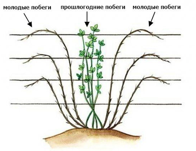 Рис. 4. Привяжите полупрямостоящую ежевику без шипов к двухпроволочной шпалере.