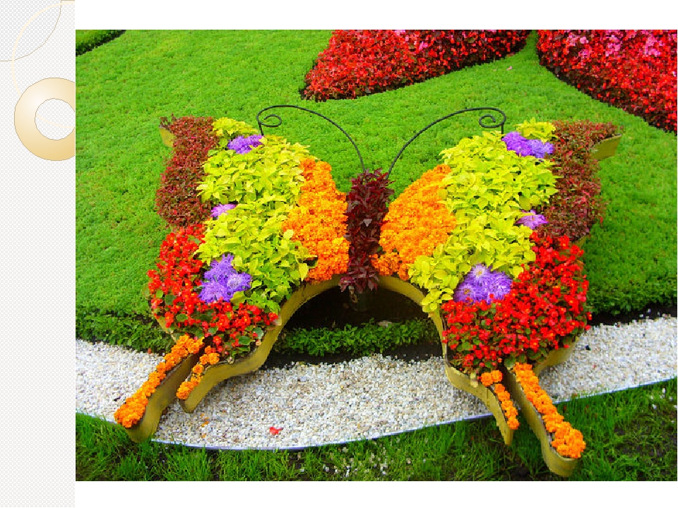 Например, форма такой клумбы может напоминать очертания бабочки, цветка, насекомого и т.
