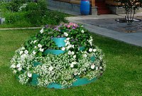 В первую очередь необходимо подобрать низкорослые стелящиеся растения, например, агетарум, очиток, петуния и т.д. Растения высаживаются плотным рядом в виде волнообразной линии, что в последующем будет имитировать бушующий «ручеек». Для лучшего визуального эффекта клумба-ручей должна иметь свой «источник» – емкость, из которой вытекает «вода». В качестве подобного «источника» можно использовать большой вазон, декоративную бочку, кувшин и т.д. Чтобы композиция выглядела гармоничным элементом, начните высаживать цветы внутри емкости.
