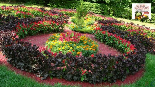 Для создания контуров и рисунков внутри арабесок рекомендуется использовать самые яркие цветы, высаживая их плотными рядами.