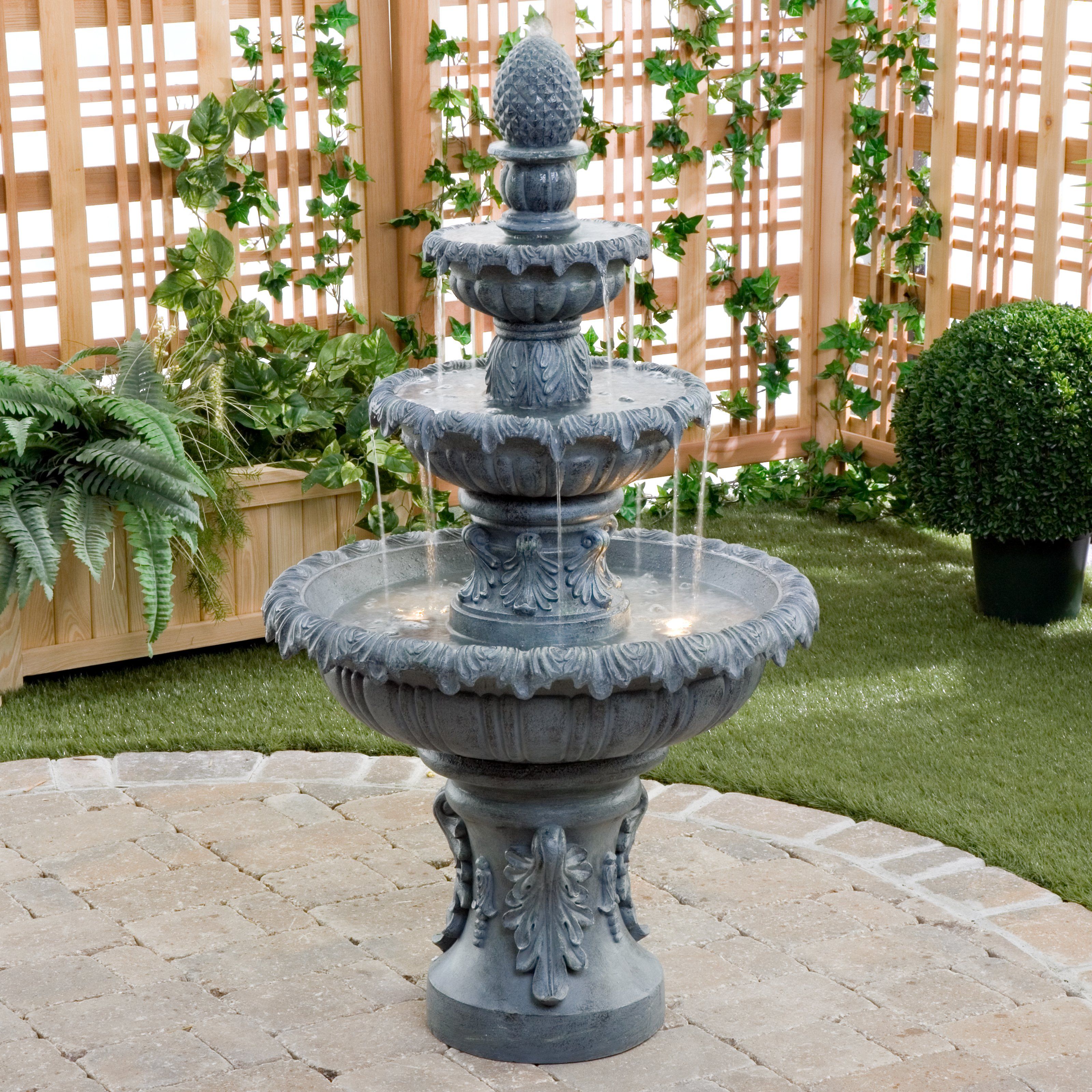 - Благодаря фонтану в форме пирамиды, на садовом участке можно создать обстановку загадочности и величия.