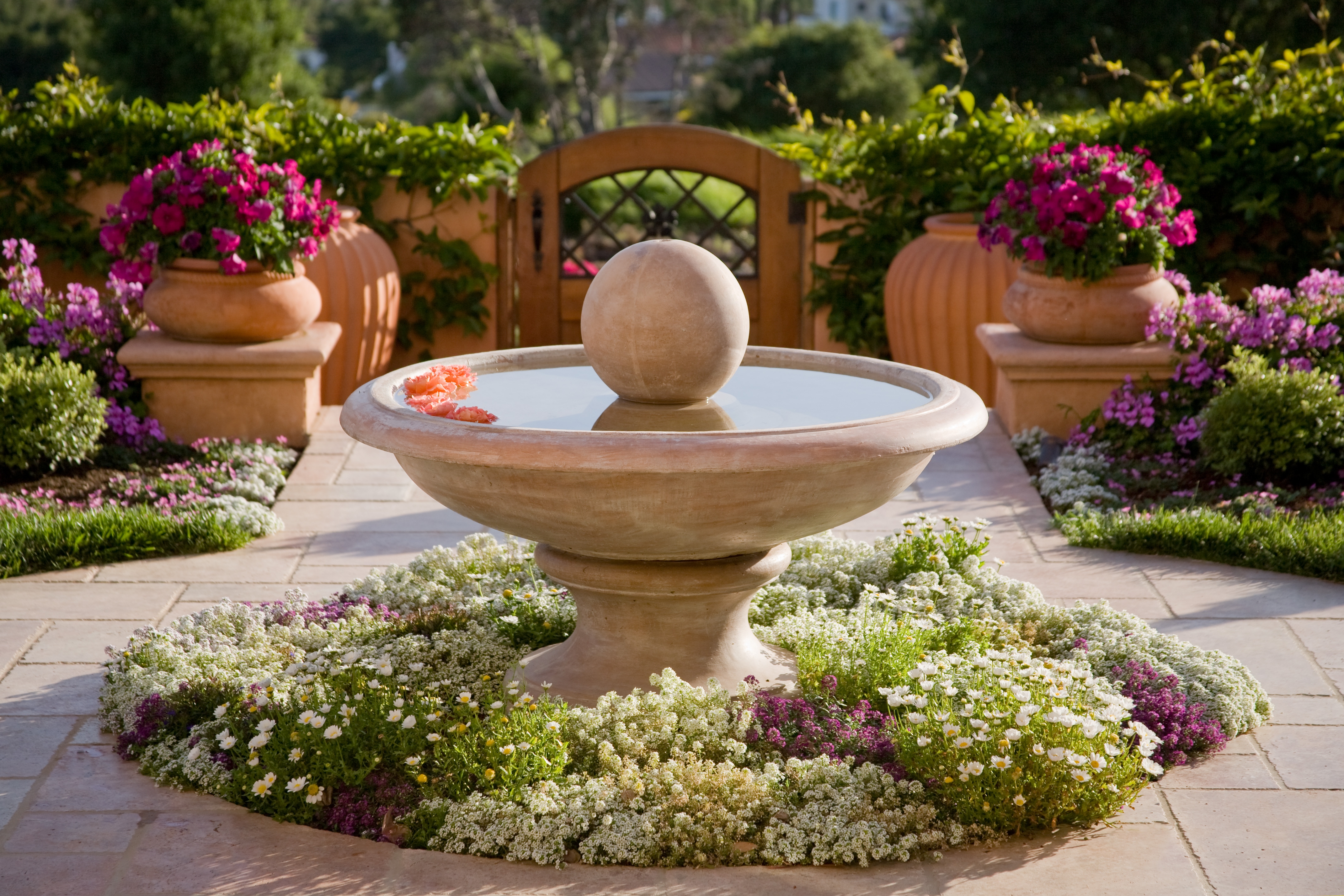 - Фонтан является украшением ландшафта, поэтому его следует размещать на видном месте. Однако не стоит размещать сооружение под лучами палящего солнца.
