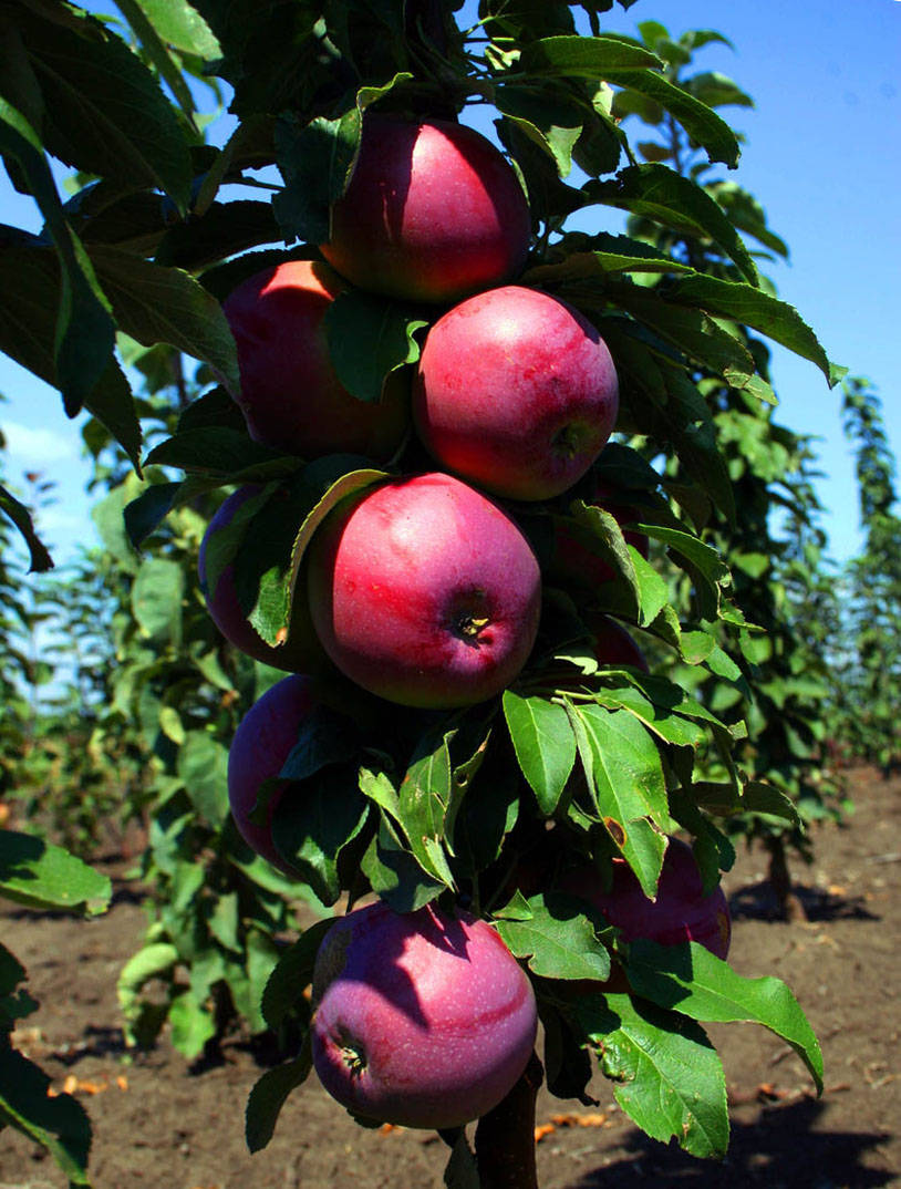 При грамотном подборе сортов с «колонн» можно получить гораздо больший урожай с единицы площади посадки, чем на обычных, традиционных яблонях и схемах посадки. Порою садоводы-любители обращают внимание только на первый, главный пункт — высокую урожайность, забывая, при помощи каких средств она достигается. А их всего два — относительно высокий урожай с дерева и плотное размещение деревьев.