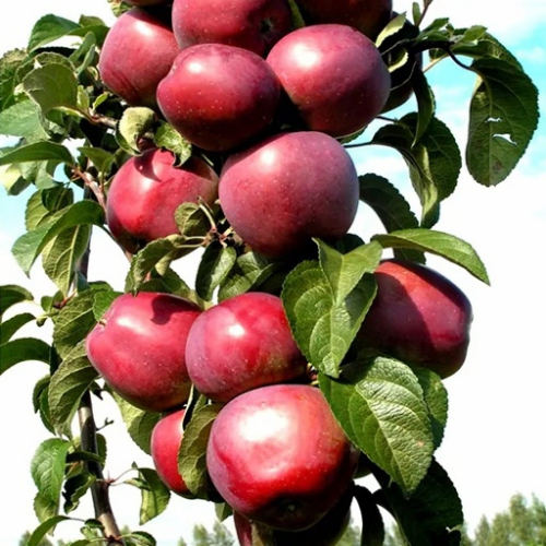 | МОСКОВСКОЕ ОЖЕРЕЛЬЕ Зимний, скороплодный и необычайно урожайный сорт колонновидной яблони. Иногда под тяжестью плодов наблюдается изгиб ствола. Урожайность 8-10 кг с дерева. Яблоки по 150-170 г, темно-красные, десертного вкуса. Созревают в середине сентября и могут храниться до марта. Зимостойкость высокая, к вредителям и болезням устойчив. На сегодня это лучший сорт. |