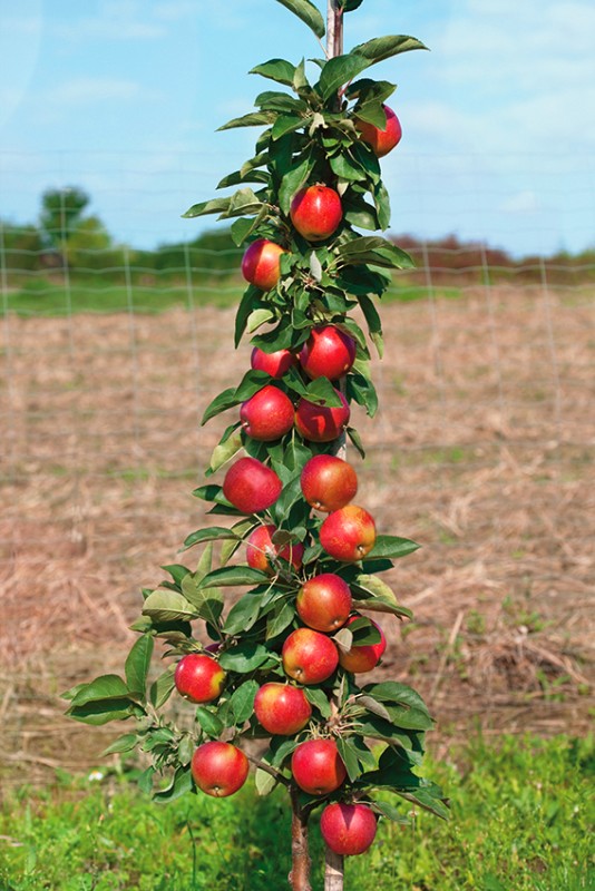 Ухаживать за колоновидной яблоней проще — не нужно сильно обрезать и формировать, да и урожай собирать с невысокого деревца легче.