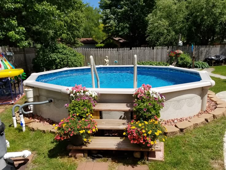 Вопреки широко распространенному мнению, можно выбрать экономичный путь и при этом получить достойный обморок двор, установив наземный бассейн. Создание уровня бассейна с настилом обеспечивает улучшенный вход, который выглядит как расширение пространства на палубе. Это идеальное место, чтобы окунуться прямо за дверью. Для дворов с земляными работами или заросших корнями деревьев наземный бассейн является идеальным решением.