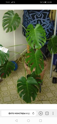 Обратите внимание на фото – у комнатного растения монстера темно-зеленые блестящие листья до 45 см в ширину: