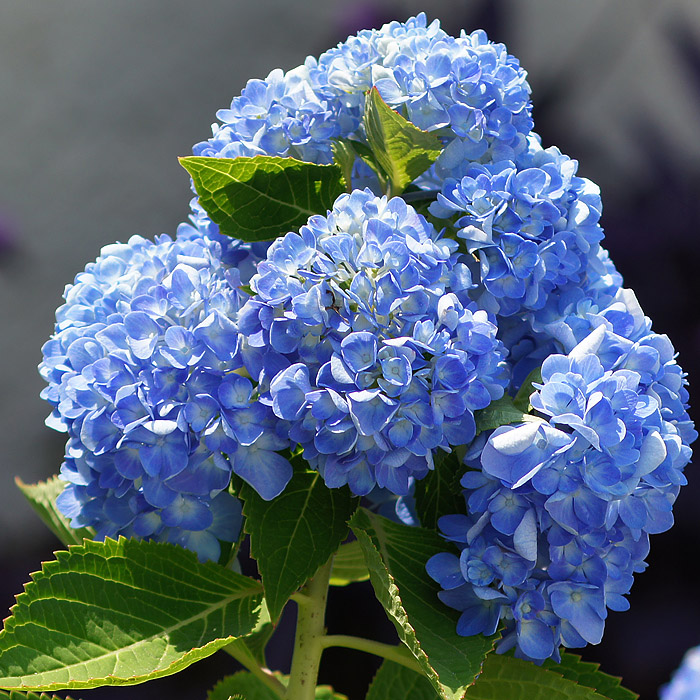 Высокие, элегантные голубые цветы гортензии.