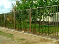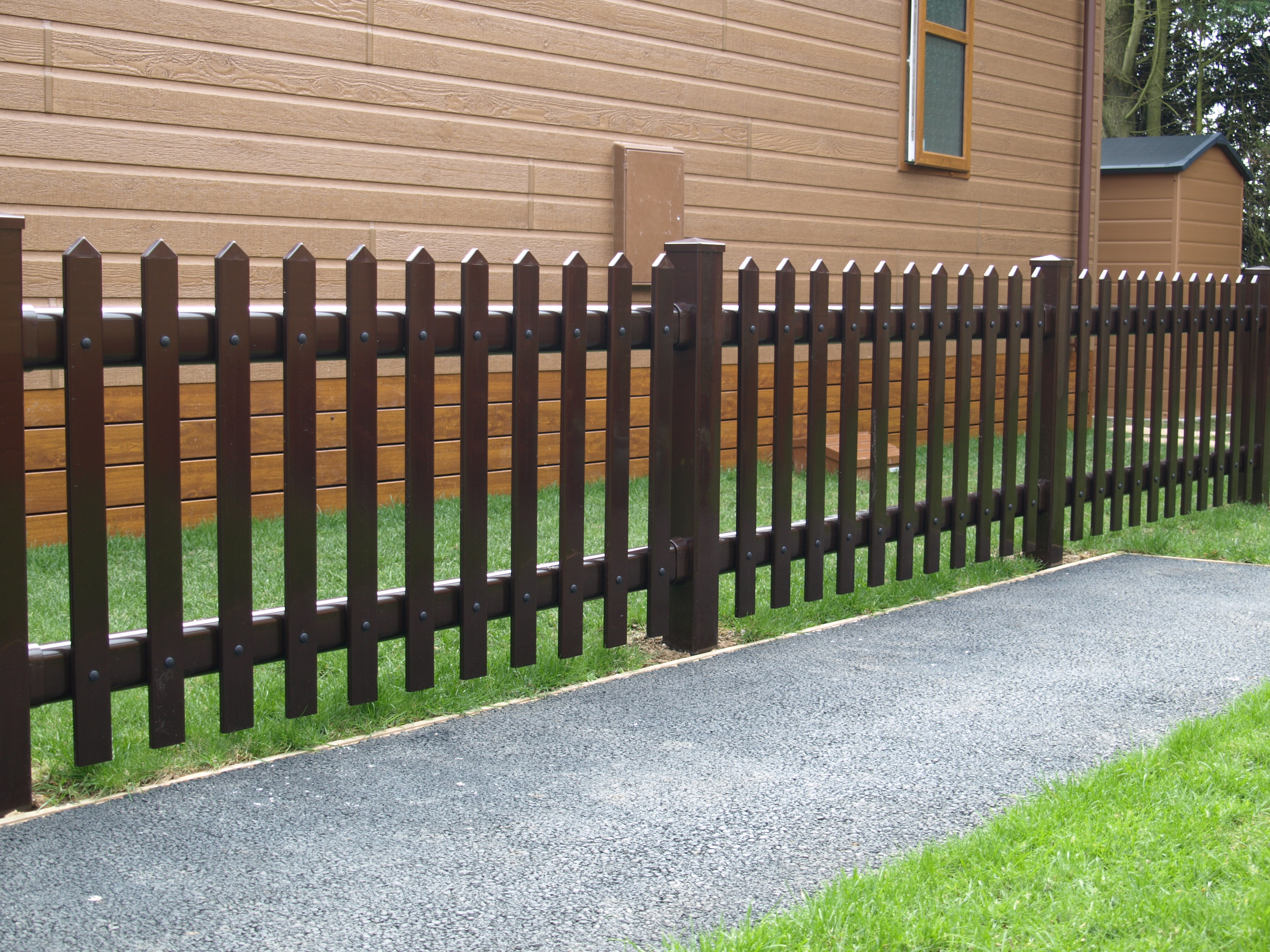 Забор из металлического штакетника отличается надежностью. Чтобы металл не ржавел, используется специальная антикоррозийная краска.