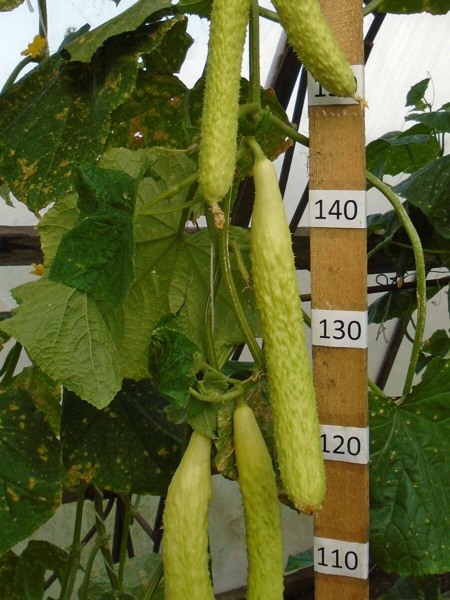 Поэтому, растения сажают гуще, чем обычные огурцы. На 1 кв.м. размещают 3-4 куста. Плети располагают на шпалерах. Так получаются ровные плоды с презентабельным видом.