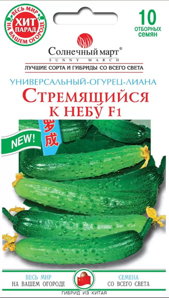 | Китайский болезнеустойчивый F1 | Среднеранний, начало плодоношения через 48–50 дней после появления прорастания | Партенокарпический | Сильнорослое (до 2,5 м в высоту), среднеплетистое |
