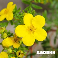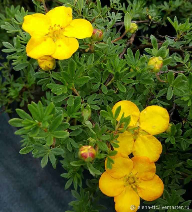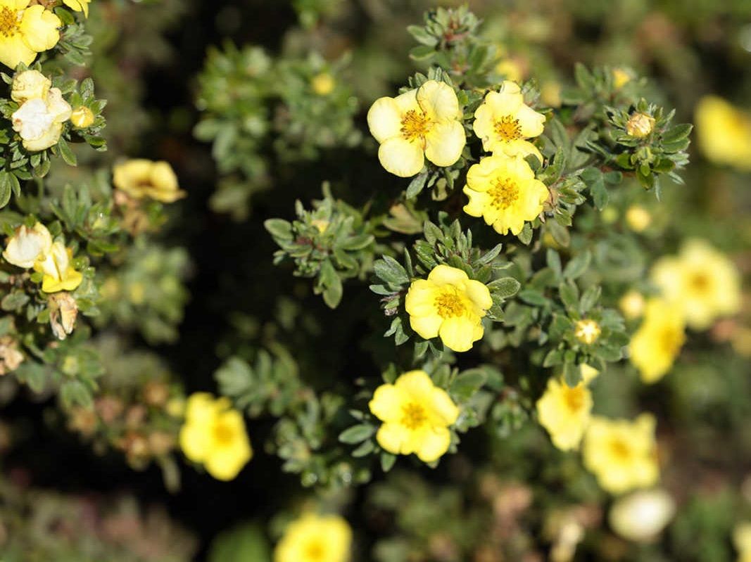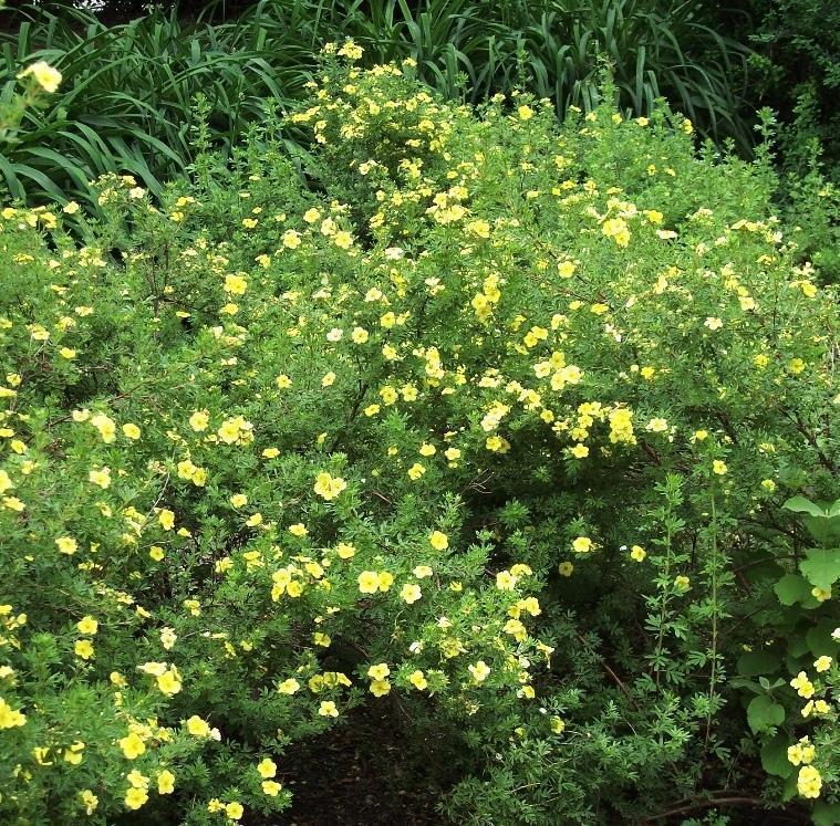 - «Саммерфлор». Ещё один кустарник. Высота – до 80 см, ширина кроны – до 100 см. Листочки небольшие, перистые, крона в форме подушки, плотная. Цветы крупные, около 5 см в диаметре, жёлтого цвета. Период цветения – июнь-октябрь.