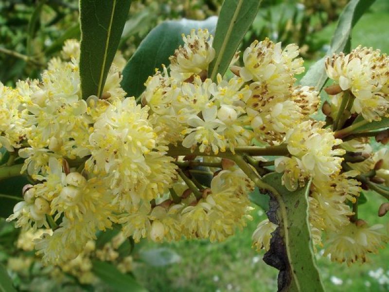 Или лавр канарский (Laurus canariensis). Обитает на о. Мадейра, на Азорских и Канарских островах в нижней части гор. Эти деревья вырастают до 15 м в высоту, а их побеги опушены. Листья тускло-зеленого цвета и яйцевидной формы вырастают до 12 см в длину и в ширину – до 6 см. Цветки светло-желтого цвета собираются в зонтиковидные соцветия, которые растут по несколько штук из пазух листьев. Период цветения у этого декоративного вида середина-конец весны.