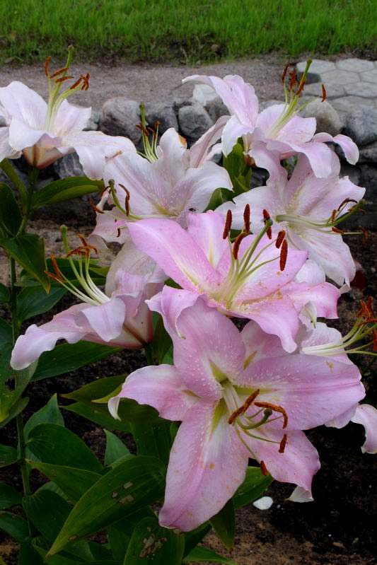 На их прямых стеблях много цветов, 3-6 на стебле . Растения достигают 2-5 футов в высоту и обычно могут стоять самостоятельно без каких-либо колышков. Азиатские лилии зацветают одними из первых, распуская цветы в конце весны и начале лета.
