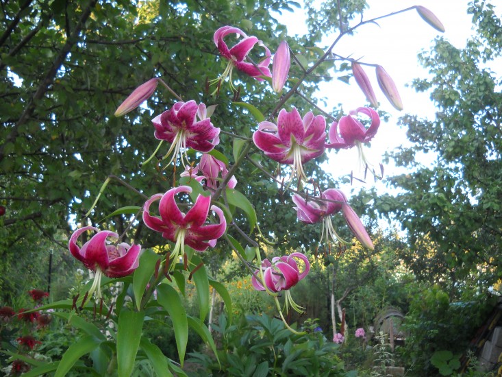 Они вырастают высокими, от 2 до 5 футов, и часто нуждаются в опорах для поддержки своих крупных цветов. Эти лилии расцветают последними, 908:45 появляется в конце лета с августа по сентябрь.