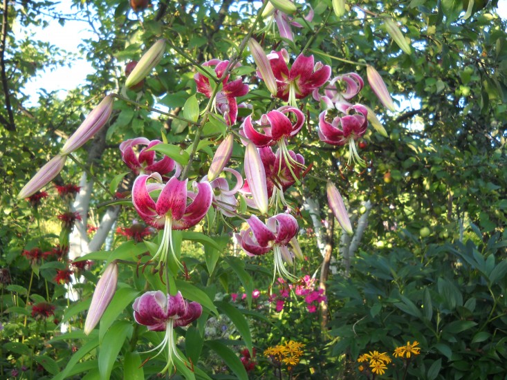 На множестве стеблей были десятки и десятки цветов. Вместе с неизвестной разновидностью желтой лилии (показанной выше), которая росла рядом с ней, у меня была потрясающая арка из лилий, которая отмечала драматический вход в сад.