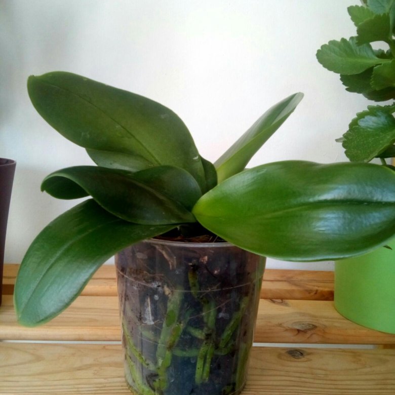 Новые орхидеи следует пересаживать; каждый год или два; или когда переполненные корни торчат из горшка .