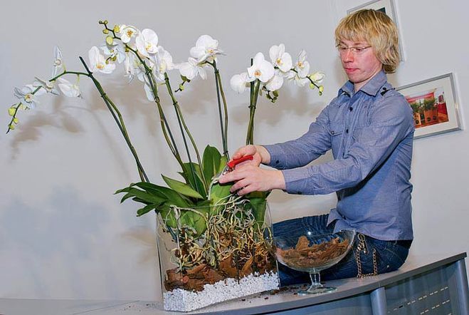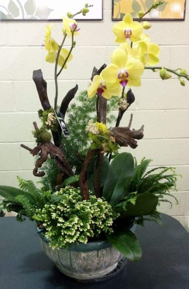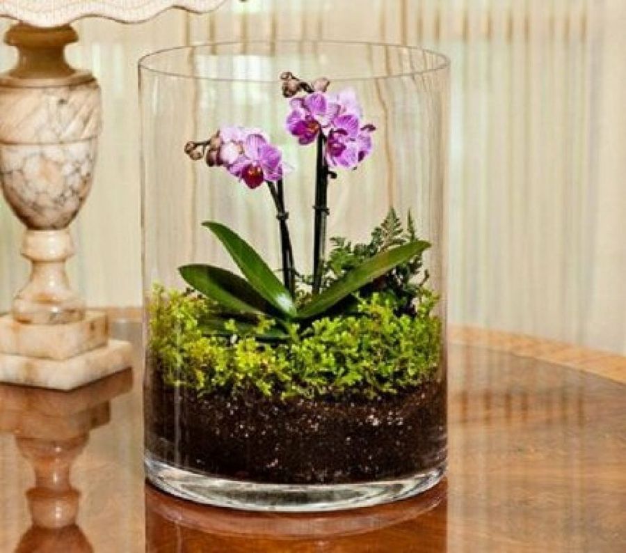 Осветите группу равномерно. - Трудность посадки взрослых растений в общий сосуд. Взрослые фаленопсисы имеют разветвленную корневую систему. Потребуется некоторая сноровка, чтобы разместить все кусты в аквариуме, не повредив их.