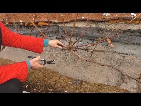 Обрезка Удаляется весь старый прирост, кроме ствола(ов) и новых побегов этого года. Для низкорослых лоз я использую несколько стволов. Новые трости этого года будут в следующем году – годовалыми. Держите больше новых тростей, чем вам нужно — некоторые из них могут погибнуть за зиму. Когда наступит весна, оставьте лучшие побеги, а остальные уберите. Плодоносящие побеги лучше всего растут из однолетних побегов и вообще несут виноград. На этом фото показана разница между однолетними тростями (то, что вам нужно) и более старыми тростями (то, что вам не нужно). Однако вам нужны трости, которые выходят прямо из ствола или из короткого отростка, а не из старых длинных тростей, расположенных далеко от ствола. Возьмите новые трости как можно ближе к стволу и уберите трости, расположенные далеко от ствола. Видео